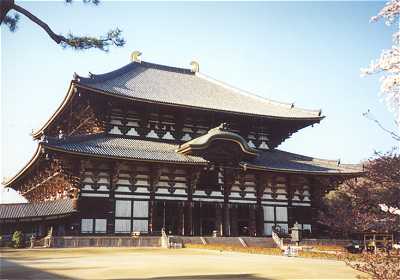 Der weltberühmte Todaiji Tempel in Nara wurde in der Nara-Periode (710-794 n. Chr.) auf Geheiß Kaiser Shomus errichtet, und ist bis heute der Haupttempel der Kegon-Sekte. Die große Buddha Halle brannte in den Kriegswirren von 1180 und 1567 zweimal ab. Die gegenwärtige Konstruktion stammt aus der Edo Zeit und wurde im Vergleich zu den ursprünglichen Proportionen um etwa ein Drittel kleiner gebaut. Dennoch ist diese Halle das größte Holzgebäude der Welt.